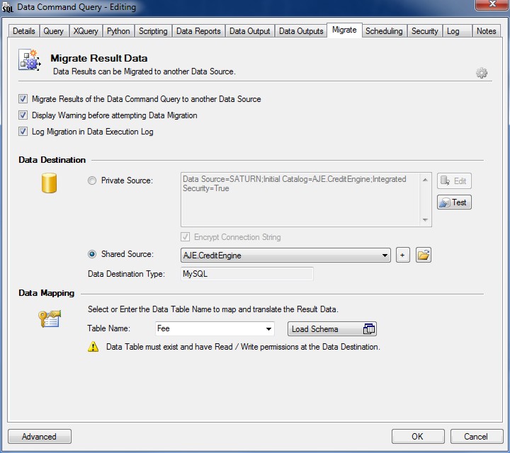 The Result Data for the Data Command Query will migrated to the Destination Data Source upon execution.