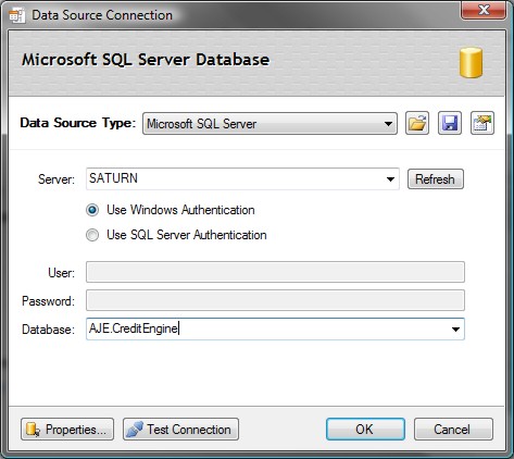 Open the Data Source Connection dialog and specify the Data Source Type and Connection String parameters for the Data Destination or create a shared Data Source and select from the drop-down list.