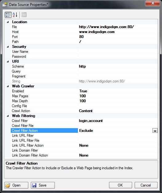 The Web Crawler can be configured using an XML File. Copy the example below to a directory and point the Web Crawler Config File in the Data Scraper to the new File. Change the parameters in the Config File as required.