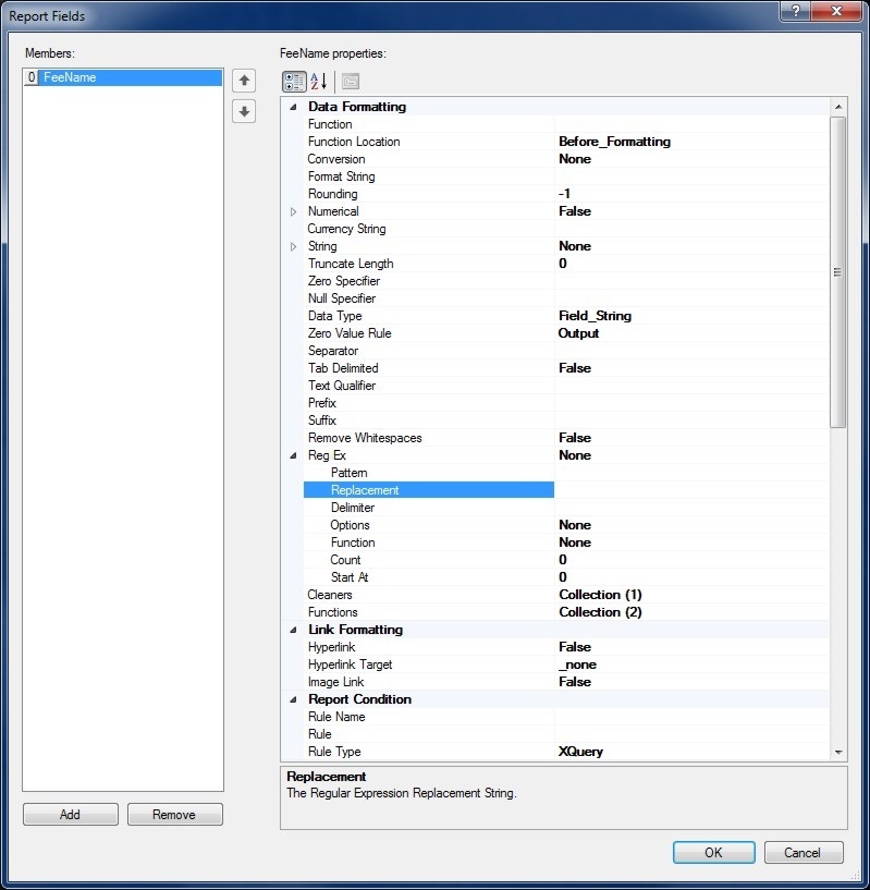 To add Report Fields to a Report Paragraph click the Fields (...) collection property button to open Report Fields Collection Editor.