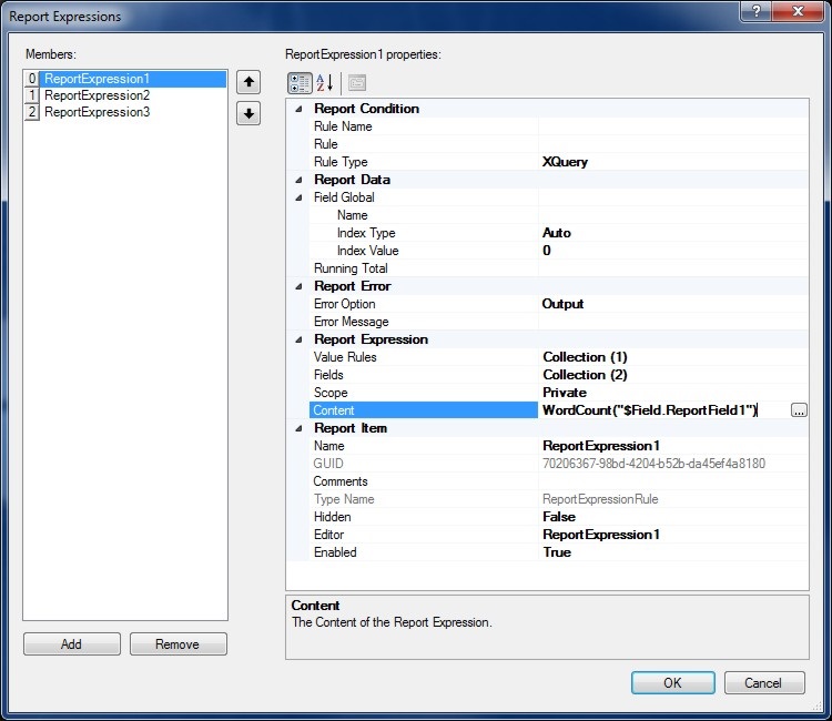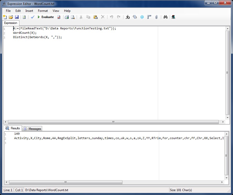 The Expression Editor allows Report Expressions to be developed and evaluated.