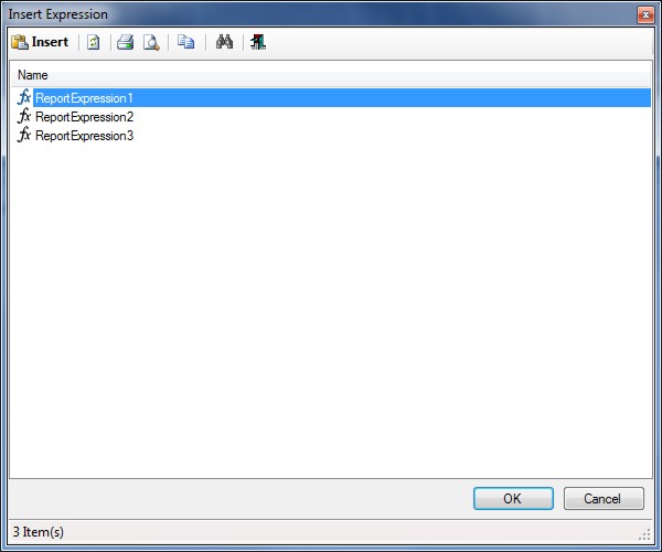 Select the Report Expression to be inserted into the Report Drawing.