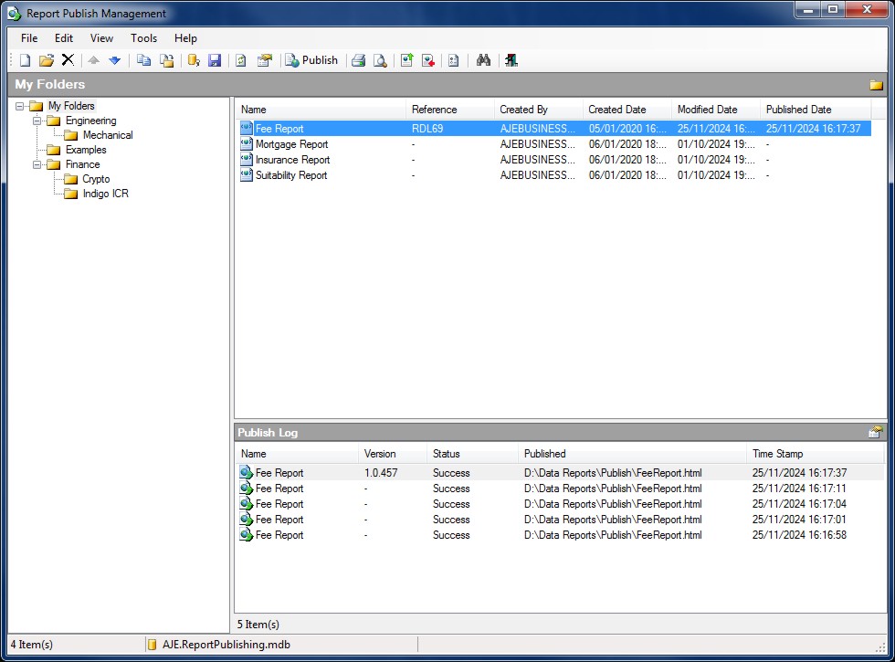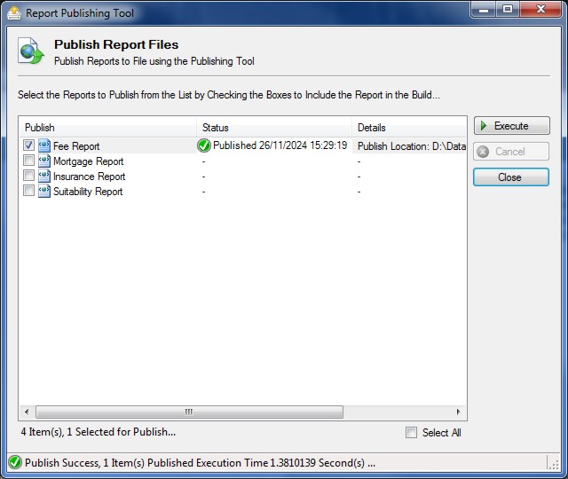 The Report Publishing Tool publishes Reports from the current list in the Report Publish Manager.
