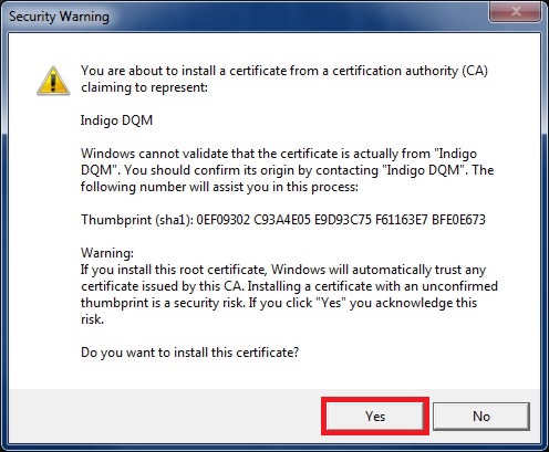 Download and Install Indigo DQM Certificate