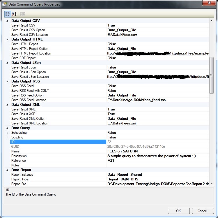 Indigo DQM's Data Management Engine (DME) can output and automatically save Data and Reports for Data Command Queries in various formats including HTML, PDF, RSS, XML, JSon, XLSX and CSV.