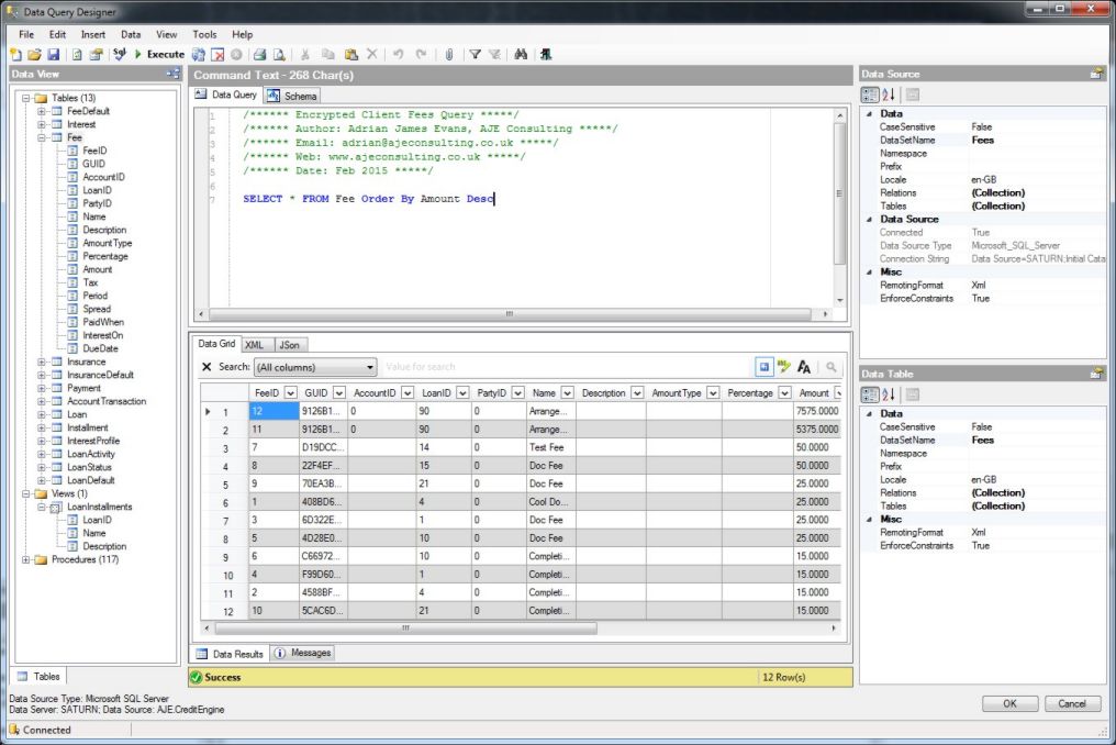 The Data Command Query designer allows complex queries to be created and tested before deployment.