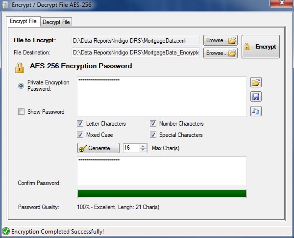Indigo File Encryption Tool allows sensitive and confidential information to be encrypted for secure transmission.