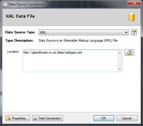 Data Source Files can be XML, JSon, XLSX, CSV or TXT and can be local, on a network or located on the Internet / Intranet.