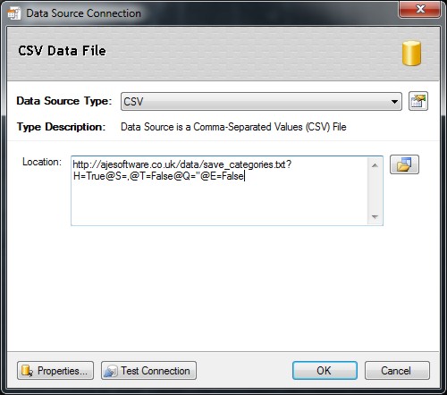 Specify the URI location of the CSV Data File which can be local, network or Internet / Intranet.