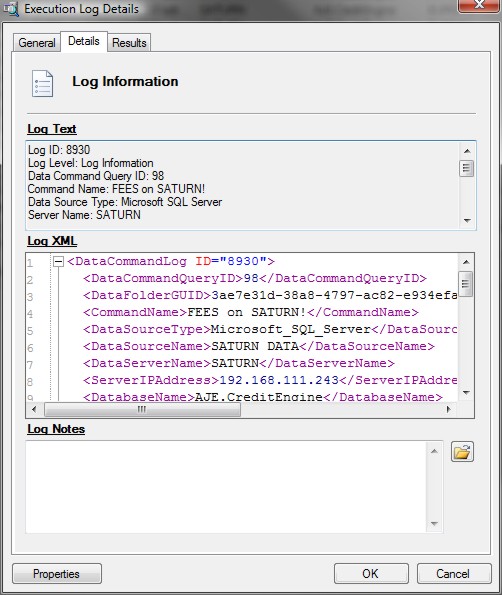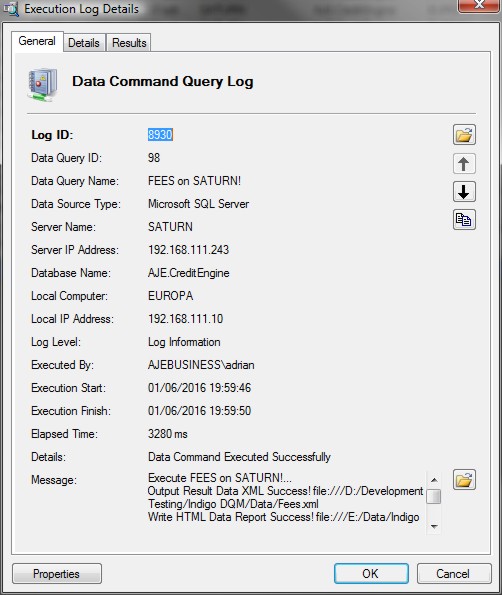 Detailed information about the Data Command is included in the Execution Log including Execution Times and the Data Source.