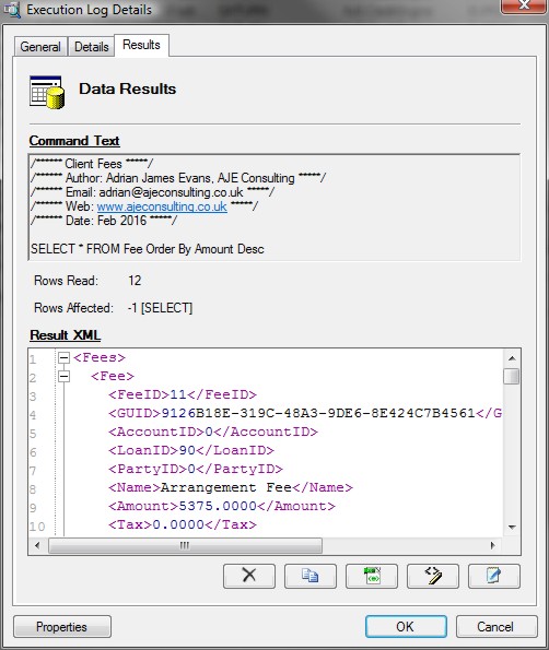 If Data Snapshots are enabled for the Data Query the exact Command Text that was executed at the time is captured along with the Result XML.