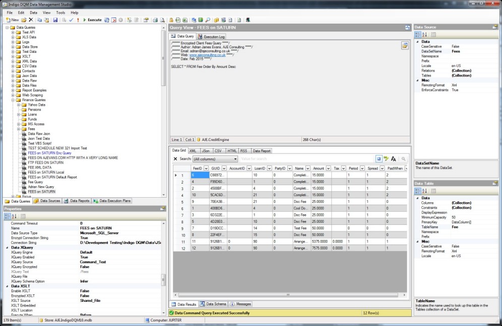 The Indigo DQM Data Management Studio allows multiple Data Command Queries to be organised into Data Folders in one central location. Data Command Queries can managed and executed on demand with the Data Results viewable in multiple different formats.