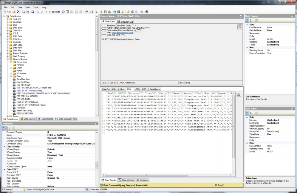 Indigo DQM Data Results can be output into various formats including XML, JSon, CSV, HTML, RSS and custom HTML and RDL Data Reports.