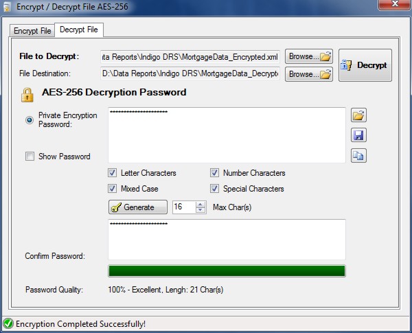 Indigo File Encryption Tool allows sensitive and confidential information to be encrypted for secure transmission.