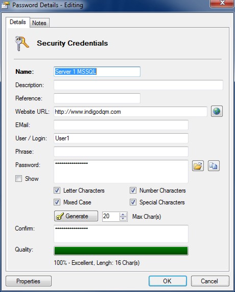 Indigo Password Management Tool (PMT) is a professional password management system that allows sensitive user logins and passwords and / or credentials to be managed, organised and securely stored in an AES encrypted data file with easy and quick access to the secured data.