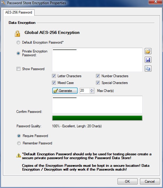 Specify a secure Private Encryption Password for the Password Store and keep in a safe place. Store Encryption Passwords can be required each time or remembered.