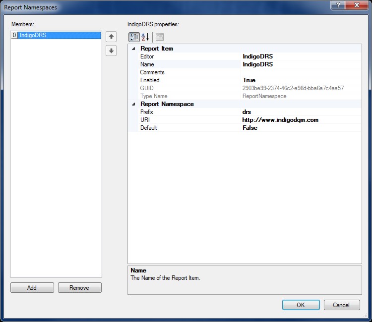 Report Namespaces are used for providing uniquely named elements and attributes and is a mechanism to avoid name conflicts by differentiating elements or attributes within an XML document that may have identical names, but different definitions. If the Report Data Source contains Namespaces they can be applied to the XQuery Processor.