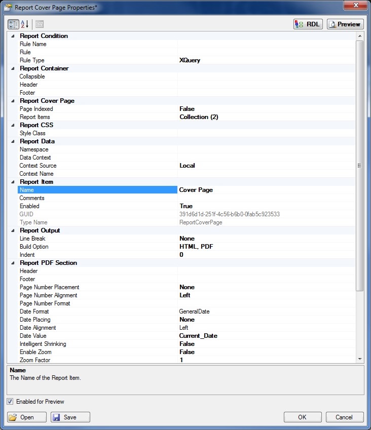 The Build Option property controls the output of the Report by including the content in HTML and / or PDF builds.