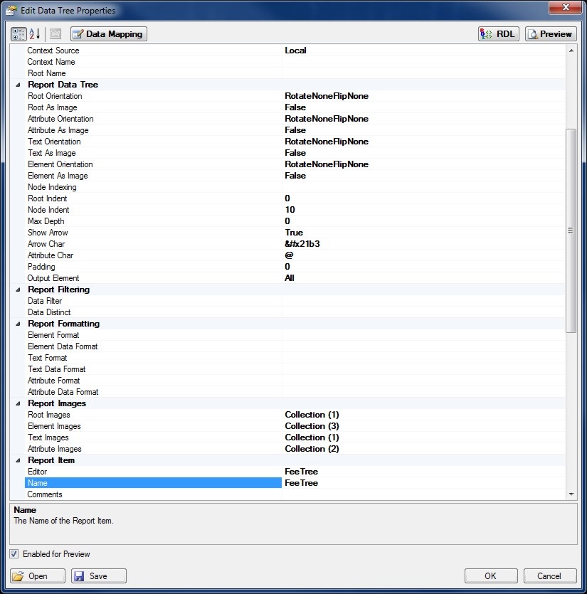 Data can be loaded into Report Data Trees from the Report Data Source or a Report Data Context.