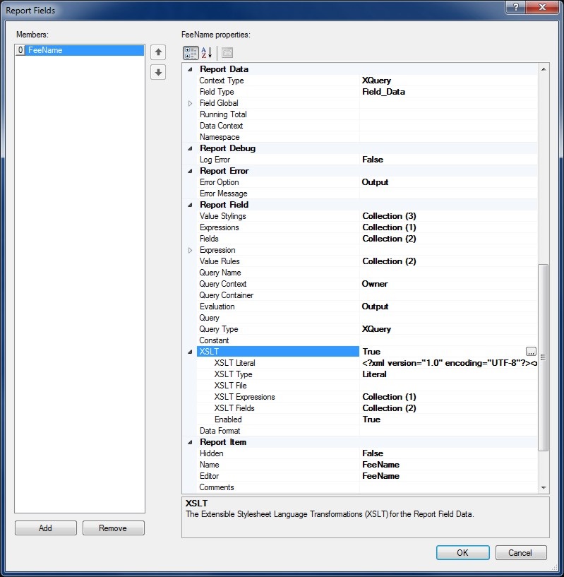 To specify an XSLT to Transform the Field Data Context click the button on the XSLT property grid to open the XSLT Editor.