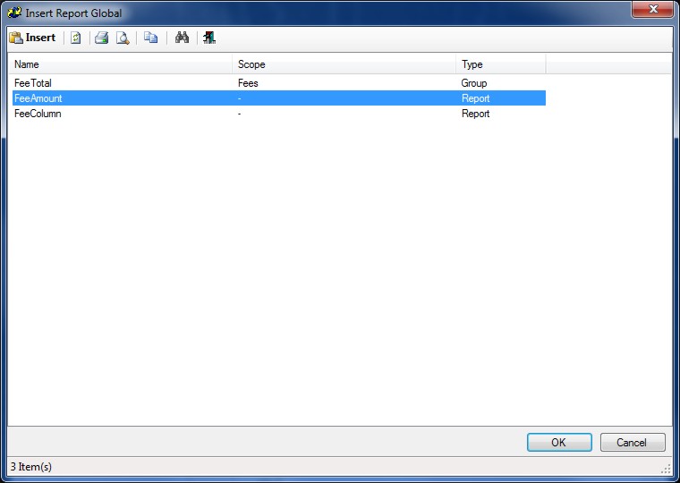 To add or edit a Report Global click the menu Data | Report Globals or select the Globals (...) collection button from the Report property page.