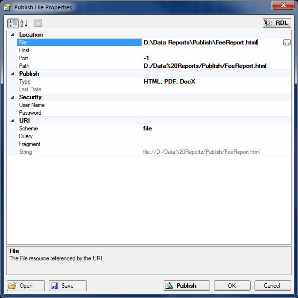 Click the Publish button and the Report output build will now be deployed to the location as specified by the Publish File URI.