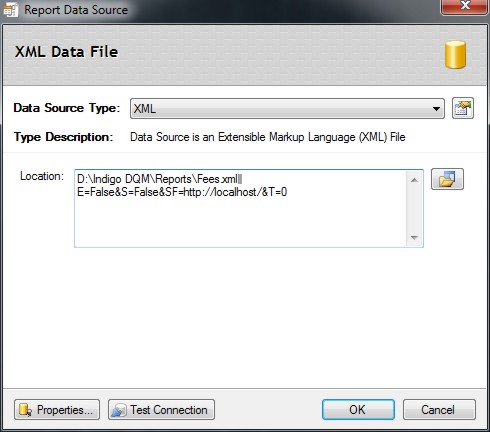 Advanced properties for the Report Data Source can be configured by clicking the Properties button.