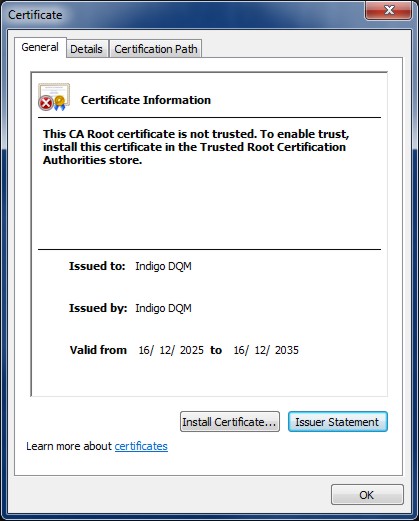 Download and open the certificate file IndigoDQM.crt