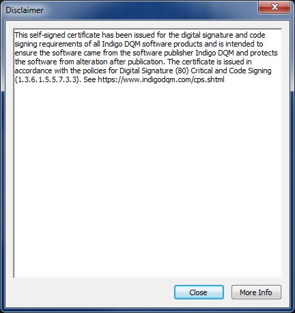 Indigo DQM software uses a self-signed digital signature