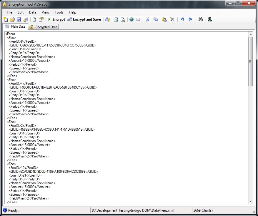 Indigo DET Data Encryption Tool allows sensitive and confidential information to be encrypted for secure transmission. The utility includes encryption and decryption functionality with options for displaying and outputting the Data.