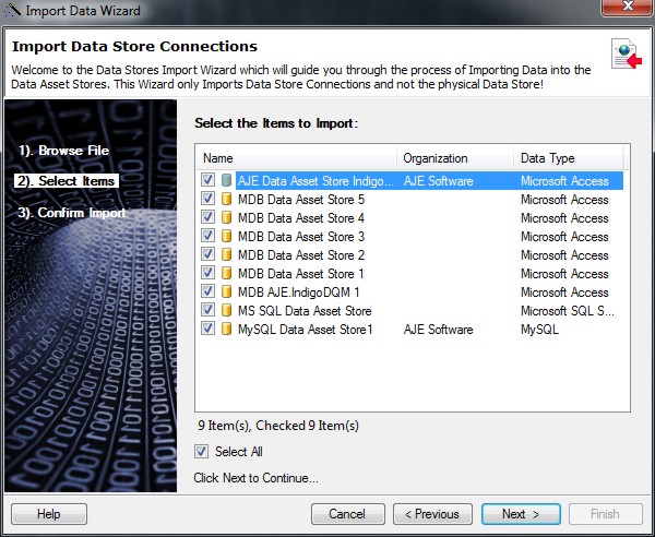 The Data Store Import Wizard will guide you through the steps required to import Data Asset Stores.
