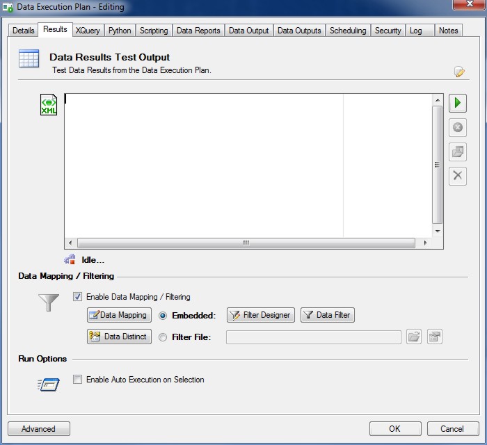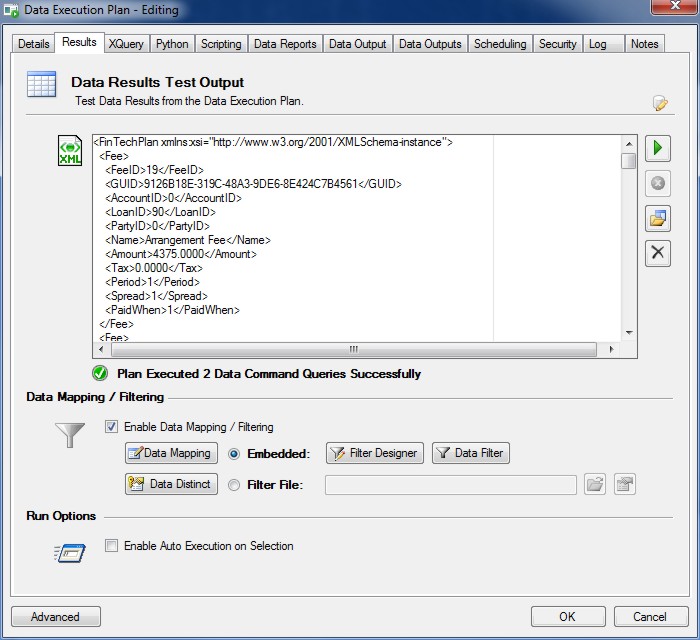 Click the 'Execute' button to view the Data Results XML for the Data Execution Plan.
