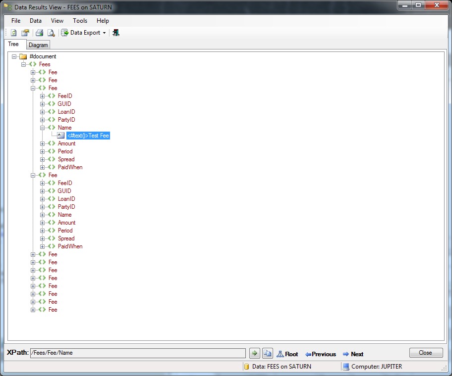 Selecting a node in the Data Tree will update the current XPath for that node. The XPath expression can then be used to query the Data Source.