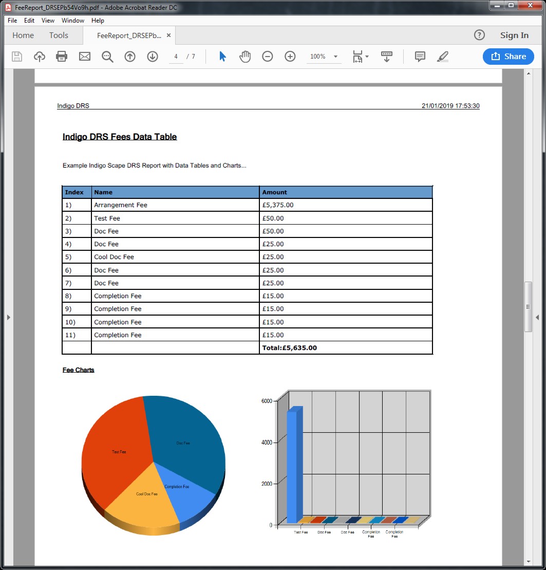 The optional Indigo DRD Report Designer Tools, not included, can quickly create advanced Reports rich in content with many options for styling, formatting and customisation. Tables, charts and graphs can be added to the Report effortlessly allowing complex Data to be presented in a visual and meaningful format with the minimum of effort.