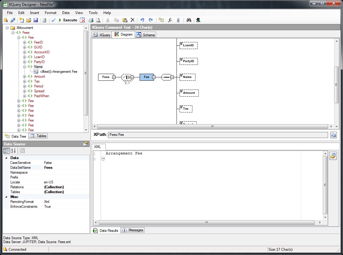 XSD Diagrams allow a visual representation of the Data Schema. Click the Diagram tab and expand out the Diagram elements to show the structure of the Data Schema.