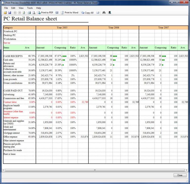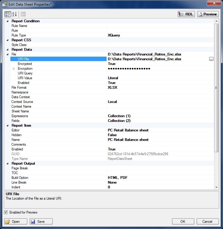 Click the Preview button to preview the Report Data Sheet output from the Property Page.